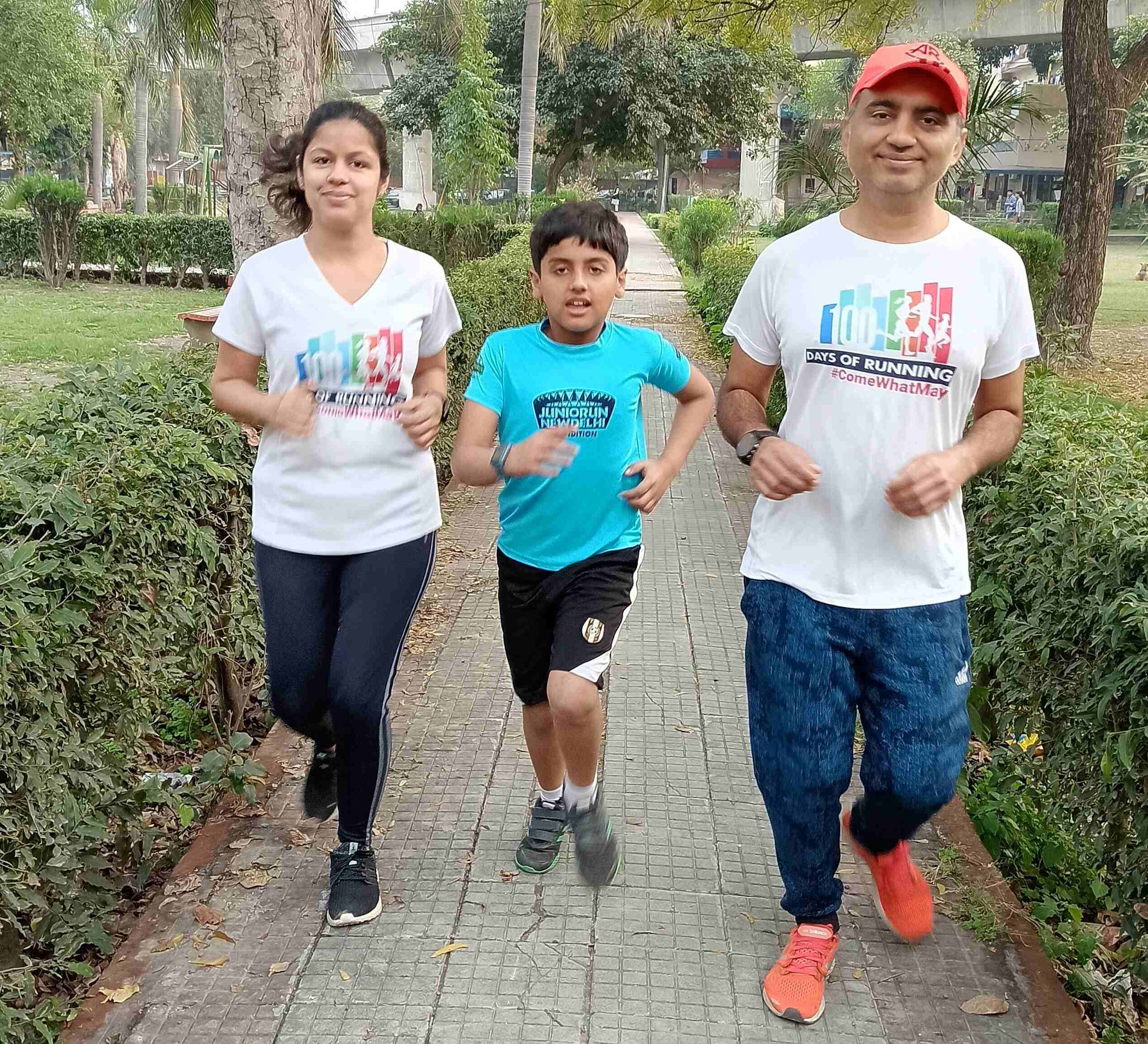 Our son Vihaan, was always excited and proud to see both of us running! It was inevitable though, that he would also run. He has been participating in 3 km and 5 km events for 2 years now and this year, he has also enrolled for HDOR.