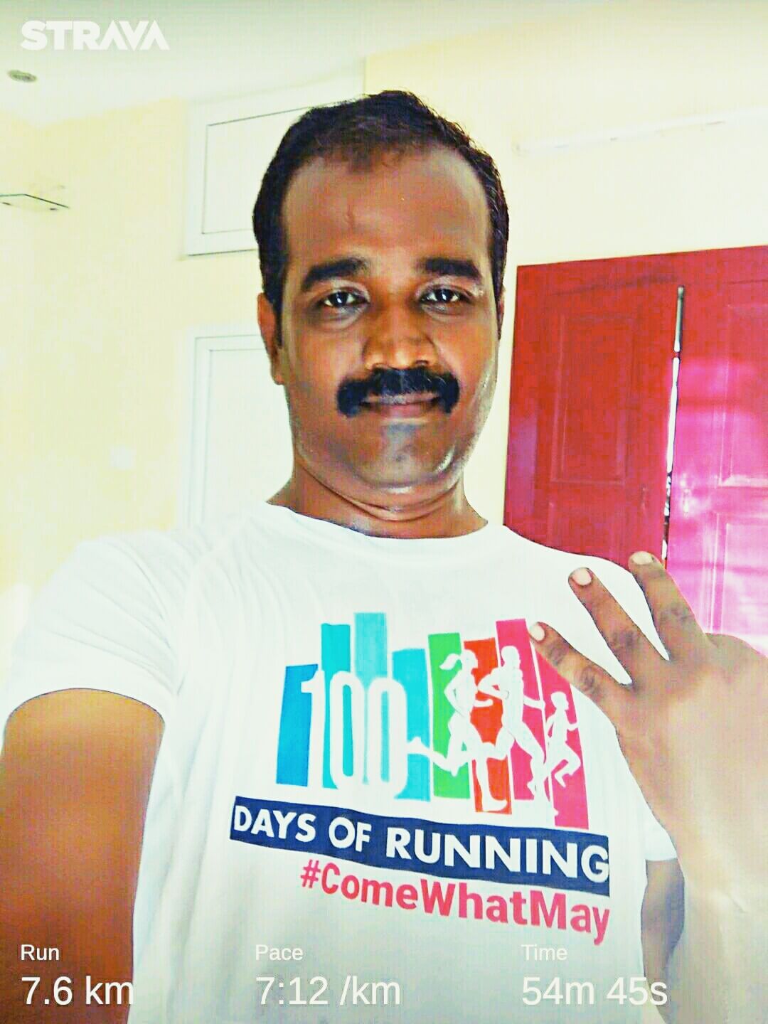 I was on a business trip in China and while I was running I met with an accident on 60th day. I still managed to finish my 100 days, and on 100th day I ran a half marathon and finished strongly.