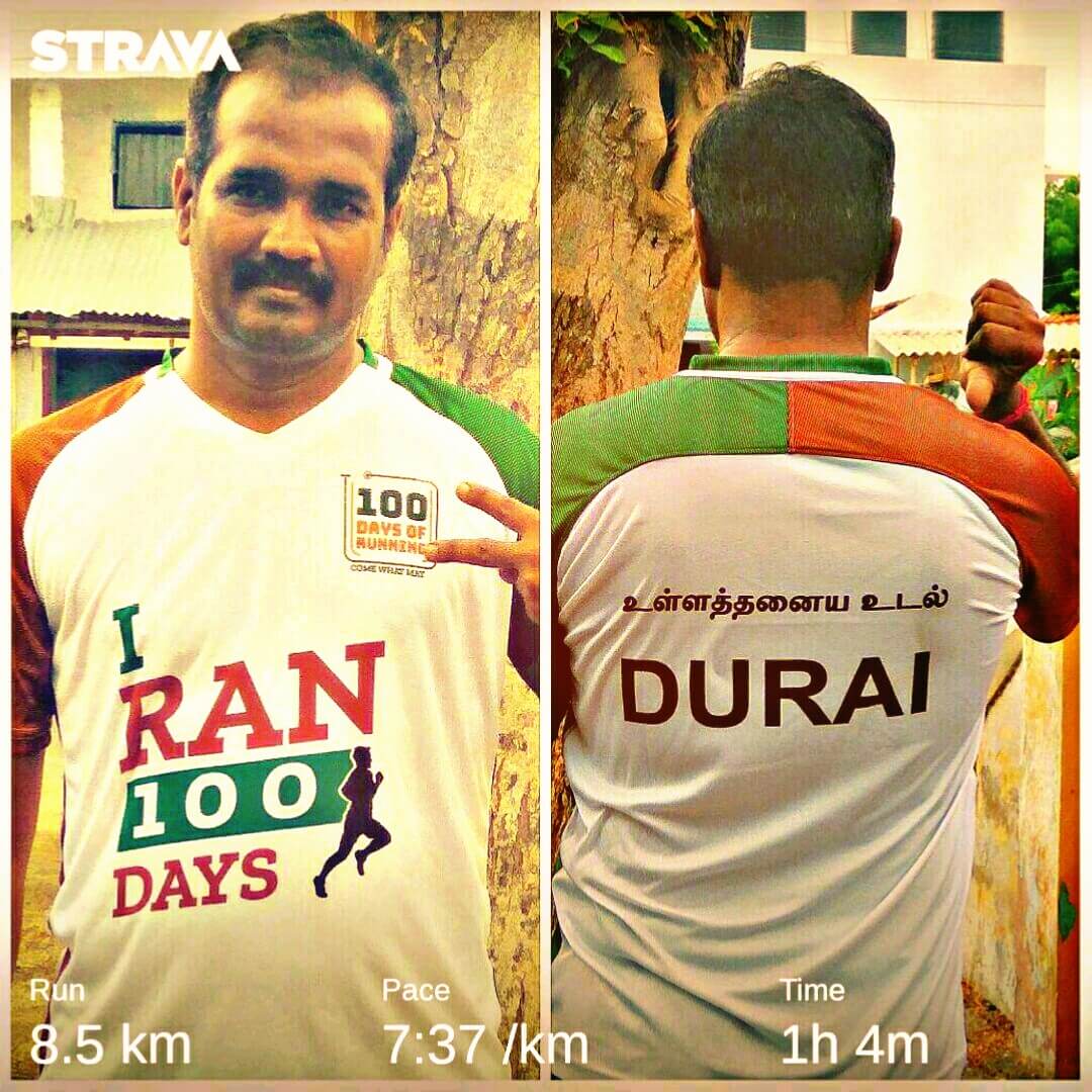 ஆனாலும் நம்ம இருக்குற திருப்பூர்ல பணத்துக்கு பின்னால ஓடுற நாட்களும் ஆட்களும் தான் அதிகம் ன்றதால பெருசா மாரத்தான் அது இது ன்னு கலந்துக்க முடியலை, அது போல நிகழ்வெல்லாம் வெளியூர்லயே நடக்குறதால நம்ம சக தீவிரவாதி & ஓடுறதுக்குன்னே பிறந்த சிங்கம் Lion Balamurali சகோ அளவுக்கு ஊர் ஊரா தேடித்தேடி ஓடி பரிசு வாங்குற அளவுக்கு சரக்கும் இல்லை சந்தர்ப்பங்களும் இல்லை ன்றதால இவங்க எல்லாம் கொடுக்குற ஊக்கத்துல நானும் ரவுடி தான் ன்னு சொல்லி நம்ம வடிவேலு மாதிரி ரெண்டு மூனு மாரத்தான்களுக்கு போயி 5 & 10 கிமீ ன்னு நம்ம லெவலுக்கு ஓடி நமக்கு நாமே ஆறுதல் அடைஞ்சுக்கிட்டு போயிக்குட்டே இருந்தப்ப தான் இந்த 100நாள் ஓட்டம் ன்னு ஒரு தகவல் வந்துச்சி…!!