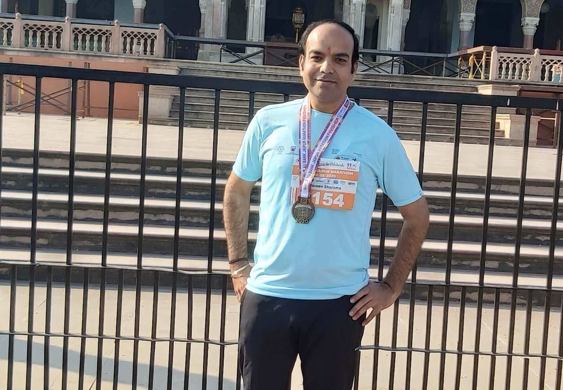 I started again with a short distance (500-700 Mt.) because I couldn’t go beyond it. I continued with my sheer determination. I went solo as most of the other runners were running in groups and long distances. Slowly and steadily I managed to increase the pace and the mileage to running 10 km at a stretch. Now, I run daily and I’m also a part of the ‘Pink City Runner’ group and weigh 79 kg.